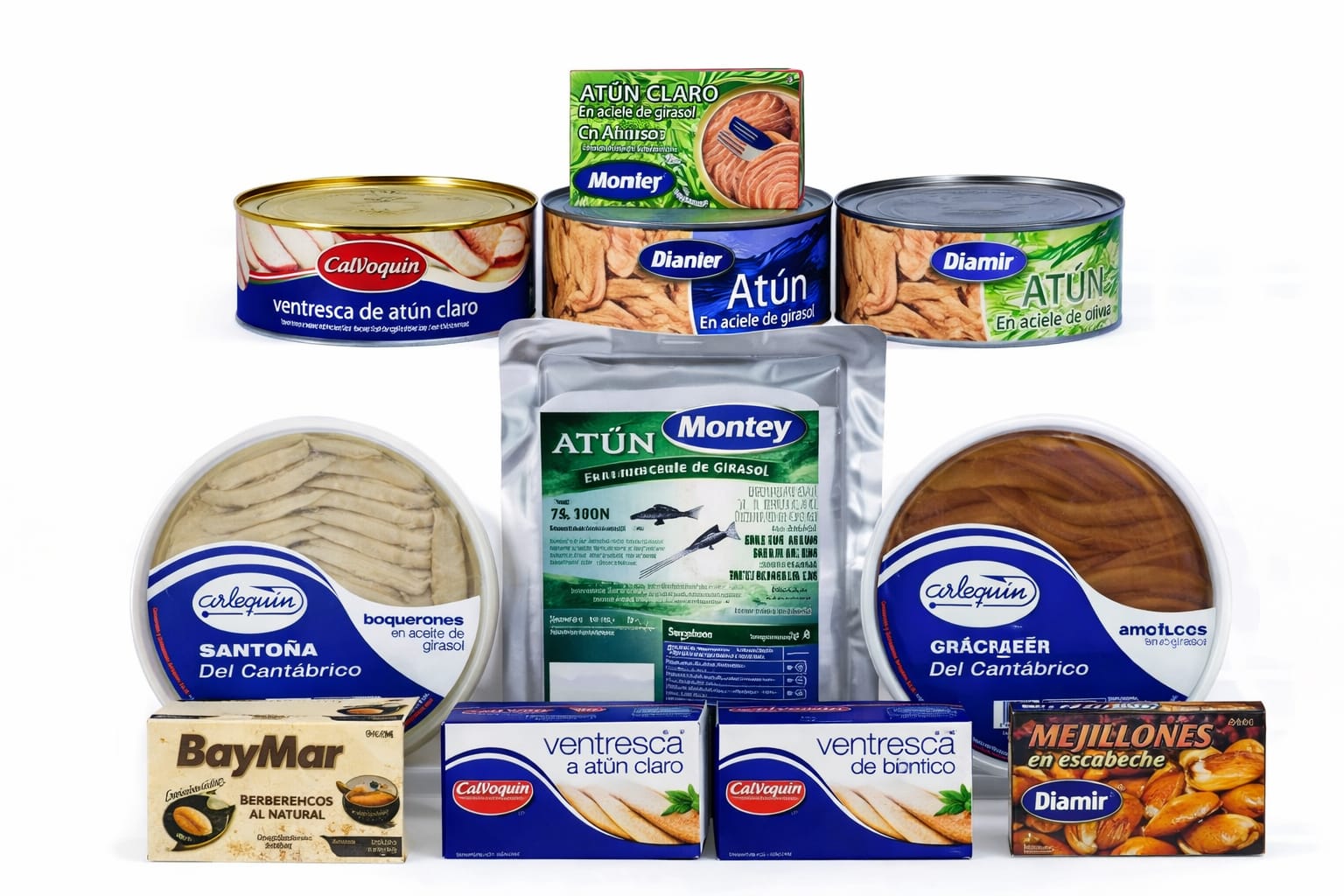 Colaboramos con marcas de alta calidad en el mercado, como son: Arlequín, Montey, Baymar, Coarvi, Diamir… de reconocida solvencia en el sector conservero.